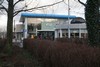 bijzonder gebouw. Gemengde reacties. Kreeg de bijnaam moskee. Aantal aparte onderdelen tegen elkaar aangebouwd. Centraal grote kubusvormige transparante hal. Afgedekt met een mollig dak met halfronde daklijst. Met vier stalen hoekpunten. Met gouden bollen er boven