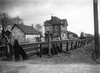 Overzichtsfoto vanaf de spoorweg overgang. Een gestroomlijnde stoomloc komt aansnellen uit de richting Hoogeveen.