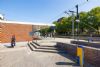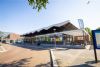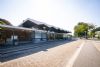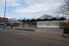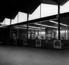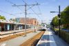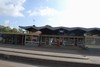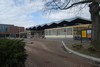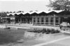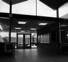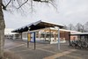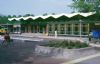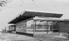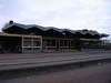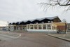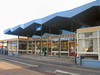 eenlags bouwvolume. Station zou worden verplaatst richting centrum maar gaat niet door. Opvallende vouwkap vormt bindend element boven langgerekt transparant gebouw.