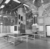 AJ van der Wal - In de jaren 60 is een doos in de imposante hal gebouwd die reizigers het zicht op de prachtige muren en plafonds ontnam. hier een kijkje in het personeelsverblijf bovenop de doos waar de prachtige versieringen zichtbaar zijn gebleven. Omstreeks 2000 is de hal weer in zijn oude staat hersteld. Hier het prachtige versierde plafond