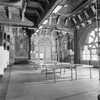 Hoog middengebouw, twee lage vleugels en twee eindgebouwen. Inwendig rijkelijk versierd