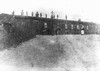 Houten nood station voor de lijn naar Leeuwarden, in afwachting van de voltooiing van het eerste echte station.