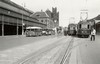 wachtkamers en restauratie op eilandperron. Op stationsplein twee hoofdgebouwen
