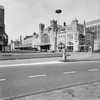 wachtkamers en restauratie op eilandperron. Op stationsplein twee hoofdgebouwen