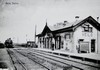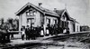 lang gerekt gebouw met in het midden aan straat- en perronzijde een puntgevel. Overwegens woning