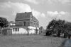 rechts een puntgevel met de toegang tot de woning. Aangrenzende goederenloods met plat dak
