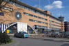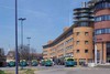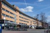 combinatie van NS- op beganegrond met vier kantoorlagen erboven. Herkenbaarheid in lange lichtgekromde gevelwand. Verdiepingen boven de ingangen een soort vide.