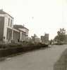 laag langgerekt middengebouw, met iets naar vorenstaand middendeel, met drie toegangsdeuren en een fronton. Aan weerszijden van het middengebouw een hoog eindgebouw, en daarnaast twee lage gebouwtjes verbonden door een muur