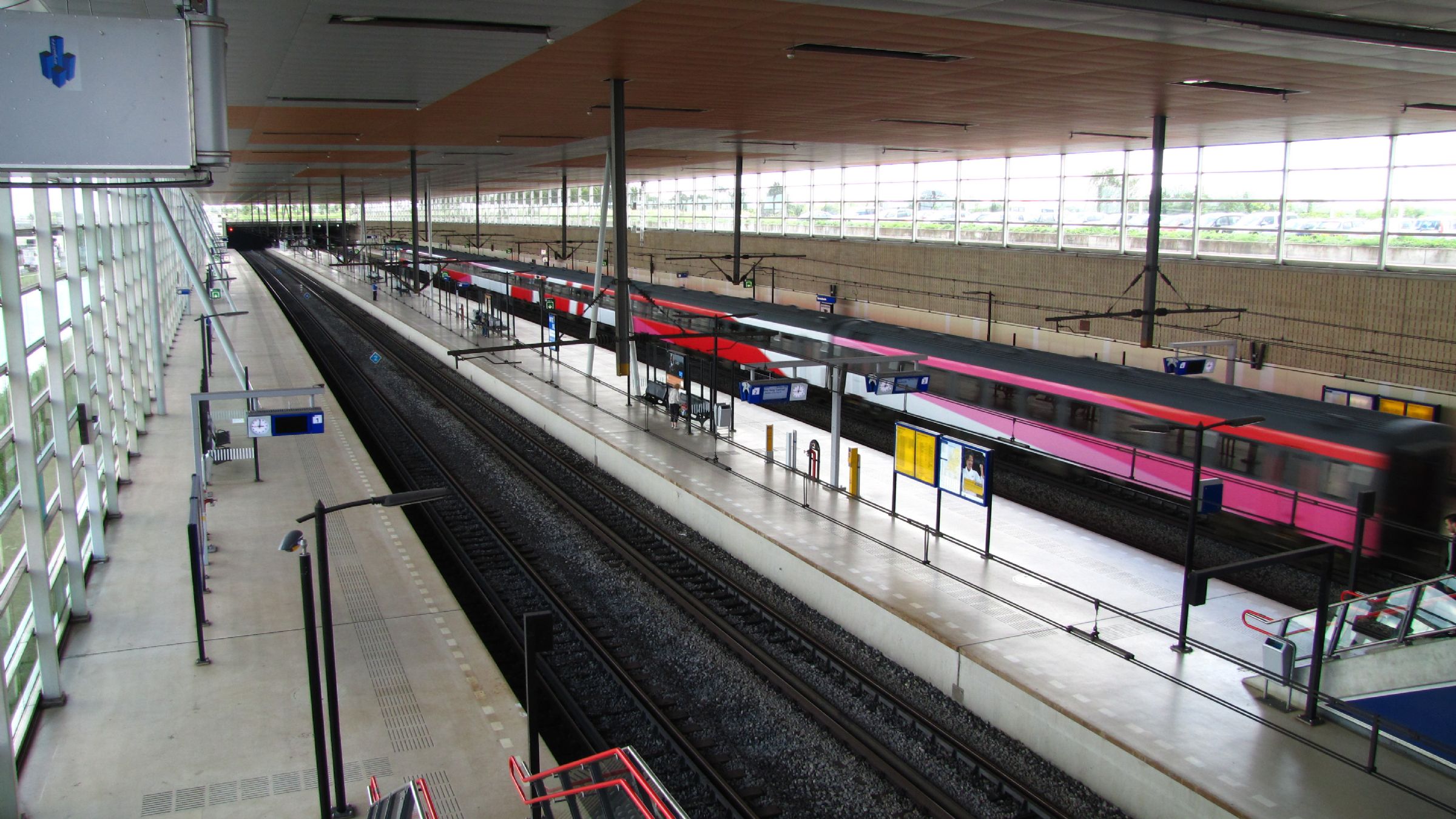 Geheel overdekte stationsomgeving half ingegraven.