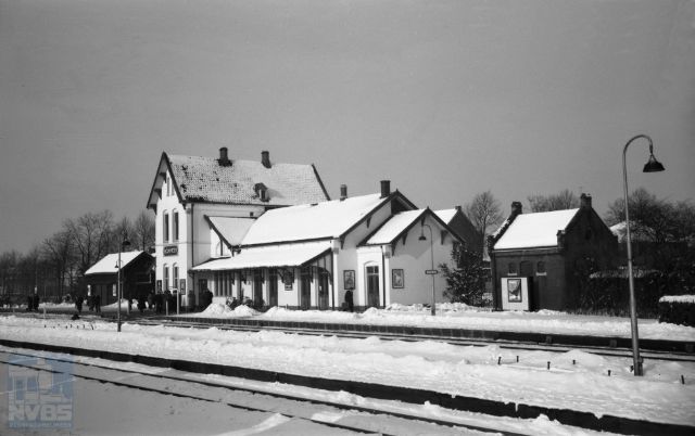 stationsgebouw (1956) type:Hemmen Aantrekkelijk asymmetrisch gebouw. Hoog gedeelte als woning ingericht. Boven de toegangsdeuren gelegen in het midden van de gevel, net naast het woongedeelte is een versiering aangebacht van glas in lood met vaak een staatsspoormonogram. In verschillende stijlen gebouwd.gelijk aan grubbenvorst e.d.toegang tot de woning rechts in de voorgevel via een trapje