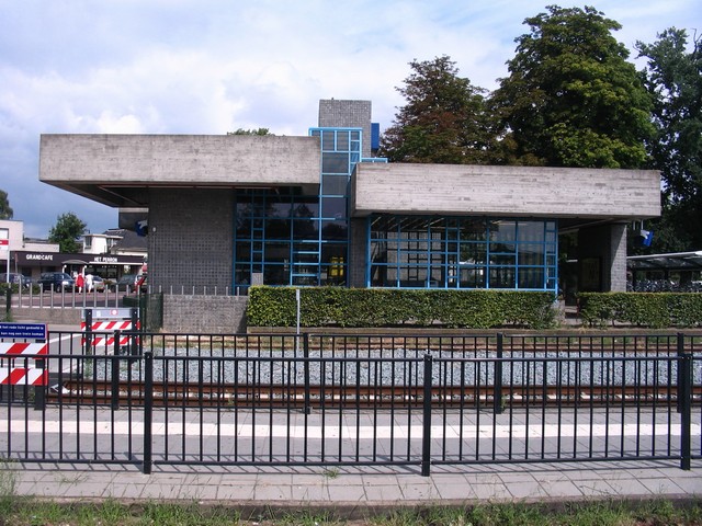 ecentrisch en ongunstig gelegen. Bescheiden station. Om van het volume toch wat te maken zijn erg dikke daken gebruikt. Centraal een toren met klok en ns-vignet