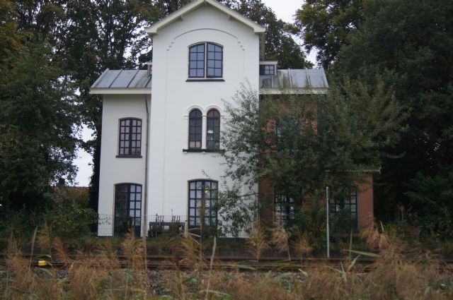 stationsgebouw (2025) type:SS 5e klasse Hoog middendeel met puntgevel, met aan weerszijden een korte evenhoge vleugel die aan de straatzijde iets, en aan de perronzijde sterk terug springt. Langs de bovenzijde van de puntgevels is bij sommige stations een bakstene sierrand aangebracht. De gootlijsten en windveren hebben een geschulpte rand. Als dakbedekking wordt in de regel zink gebruikt, maar ook pannen komen voor. De verdieping heeft onder andere twee gekoppelde rondboogvensters. De vensters en deuren hebben een kleine, maar vermeldenswaardige versiering: de plaatsen waar een horizontale en een verticale glasroede elkaar kruisen zijn versierd met een soort rozet. Tegen de zijden en in de hoeken zijn halve, resp. kwartronde rozetten aangebracht.