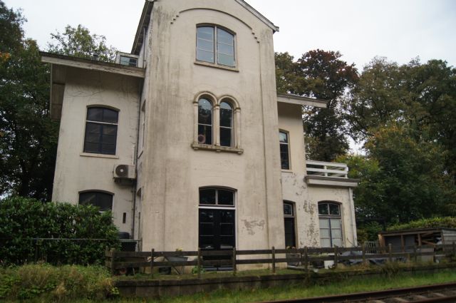stationsgebouw (2025) type:SS 5e klasse Hoog middendeel met puntgevel, met aan weerszijden een korte evenhoge vleugel die aan de straatzijde iets, en aan de perronzijde sterk terug springt. Langs de bovenzijde van de puntgevels is bij sommige stations een bakstene sierrand aangebracht. De gootlijsten en windveren hebben een geschulpte rand. Als dakbedekking wordt in de regel zink gebruikt, maar ook pannen komen voor. De verdieping heeft onder andere twee gekoppelde rondboogvensters. De vensters en deuren hebben een kleine, maar vermeldenswaardige versiering: de plaatsen waar een horizontale en een verticale glasroede elkaar kruisen zijn versierd met een soort rozet. Tegen de zijden en in de hoeken zijn halve, resp. kwartronde rozetten aangebracht.