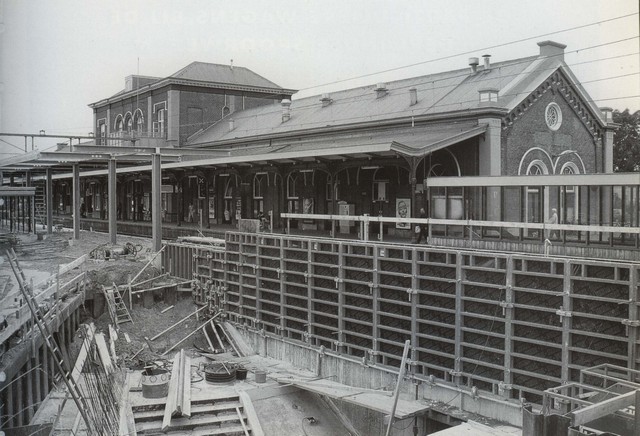 stationsgebouw (1995) hoge midderisaliet en twee lange vleugels