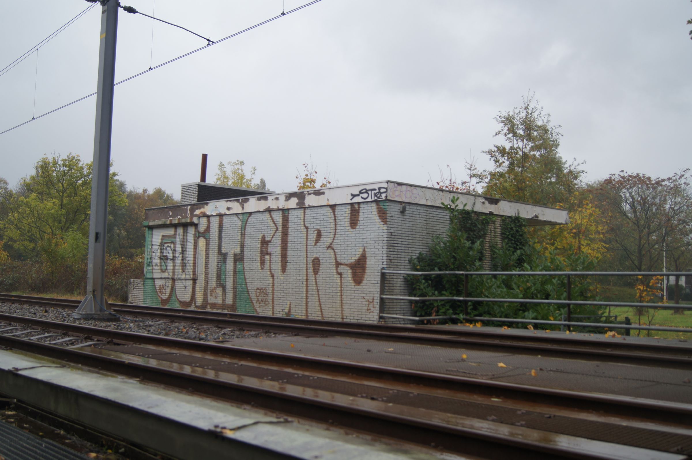 stationsgebouw (2025) type:standaard Douma standaardstationsgebouw. Baksteenschijf aan straatzijde door lokale kunstenaar.Dit gebouw is wat kleiner dan de andere van dit type. Ook het kunstwerk ontbreekt.