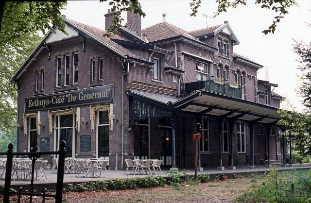hoog middendeel en twee korte vleugels van 1,5 verdieping. Tegen de linkervleugel een goederenloods en toiletgebouwen. Tegen de rechtervleugel een hoouten veranda. Bordes met marquise geeft ingang aan.
