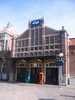 doet denken aan Amersfoort. Boven de ingang een opvallende gevel met halfrond venster. Op de rechterhoek een gedrongen torentje. Opvallend laag gehouden. Het spoorniveua is een verdieping lager dan het straat niveau.