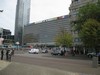 De hoogbouw op de achtergrond staat op de kopse kant van Den Haag CS. |