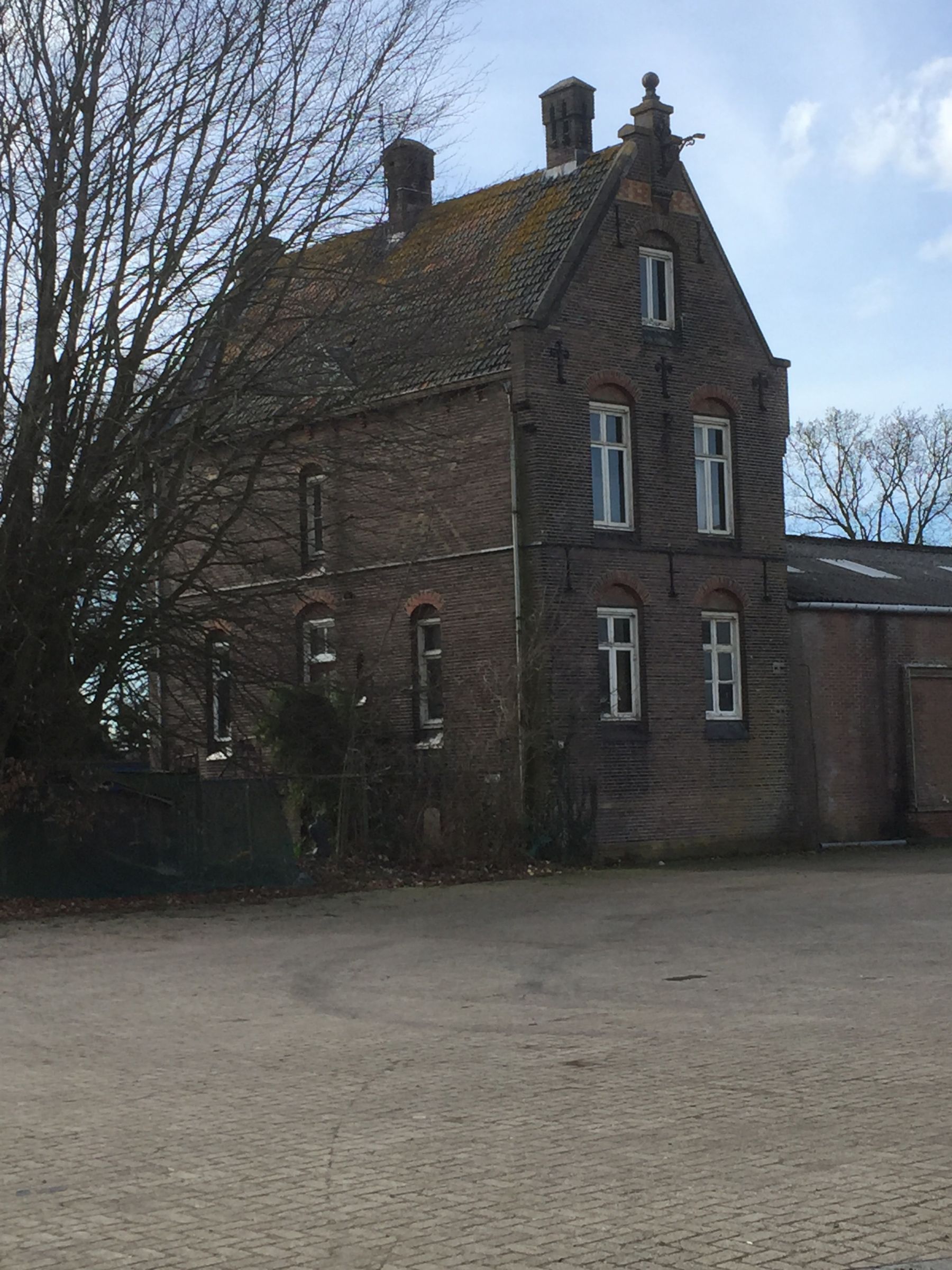afwijkend: hoog eindgebouw met lage velugel met duidelijke toegang dmv puntgevel in het midden