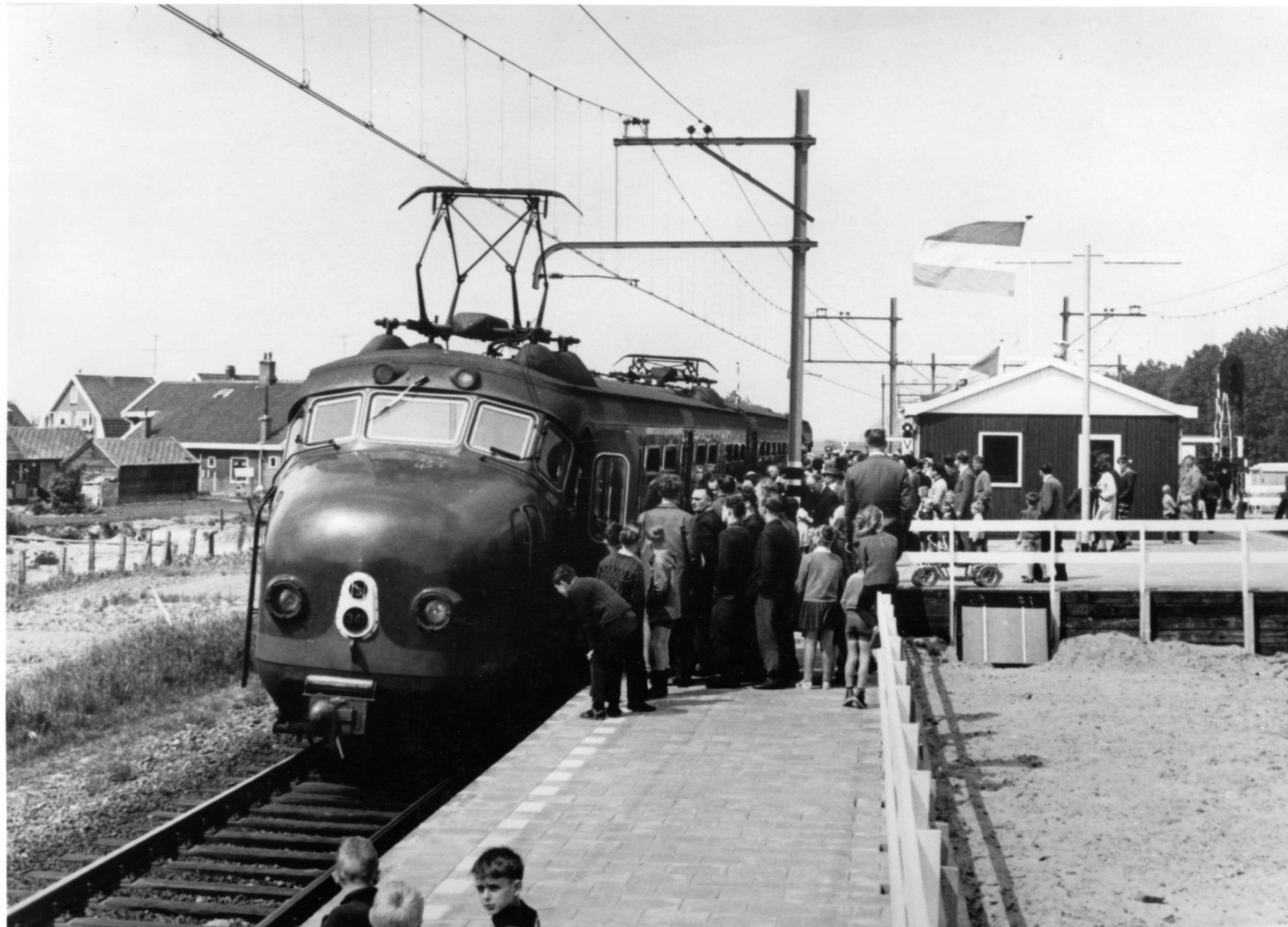 tijdelijk houten gebouwtje voordat het echte stationsgebouw in gebruik genomen wordt.